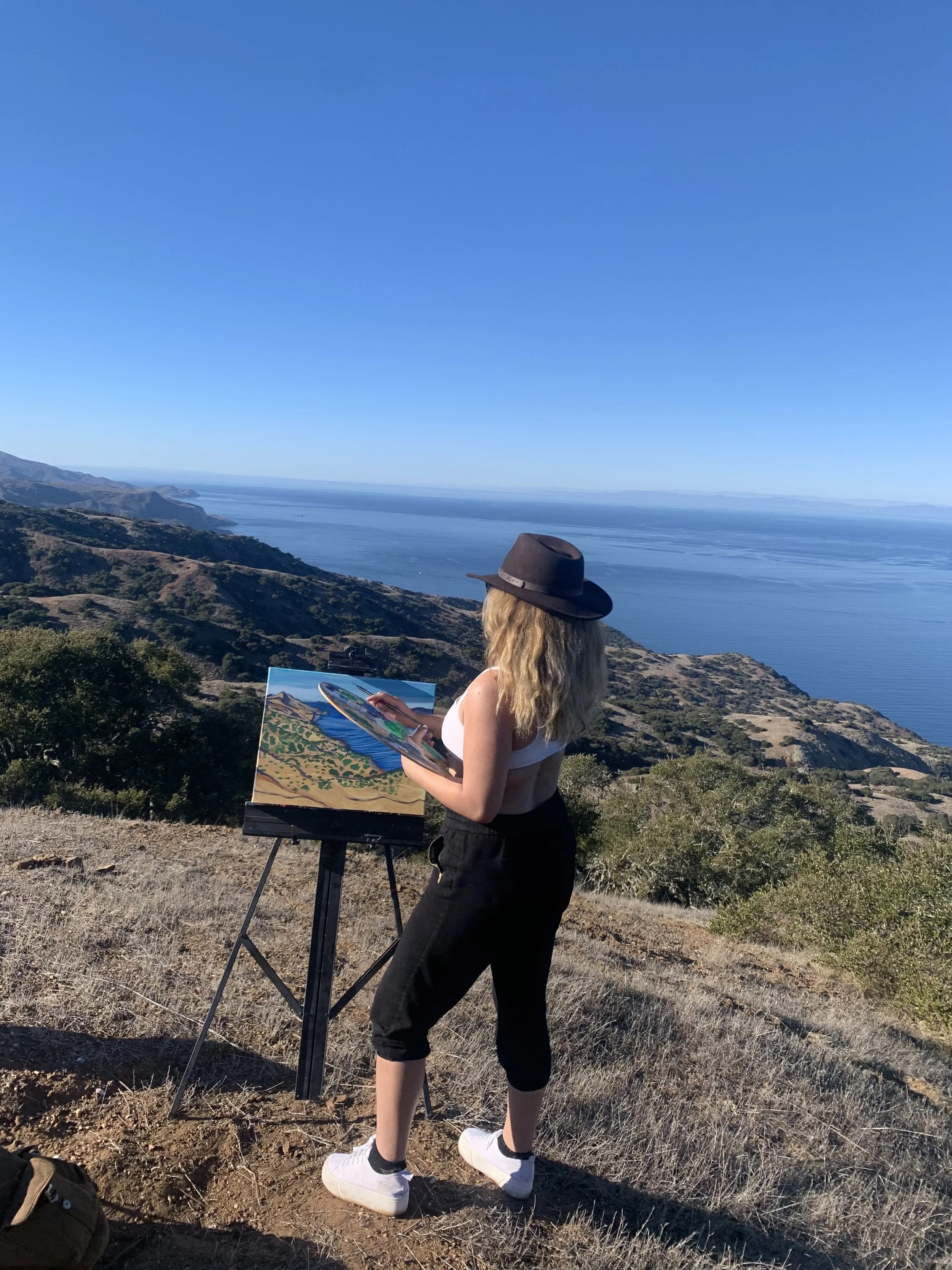 The photo displayed below is where my logo originates from. When I was a child, I had a dream, “One day when i’m a pilot, I’m going to fly to places with my easel and paint and just start painting what I see.” In 2020, I got my Private Pilot License and flew to Catalina, with my easel and paint. This logo represents a dream that came true and I am beyond blessed and grateful for all the love and support. Thank you very much, I appreciate each and every one of you